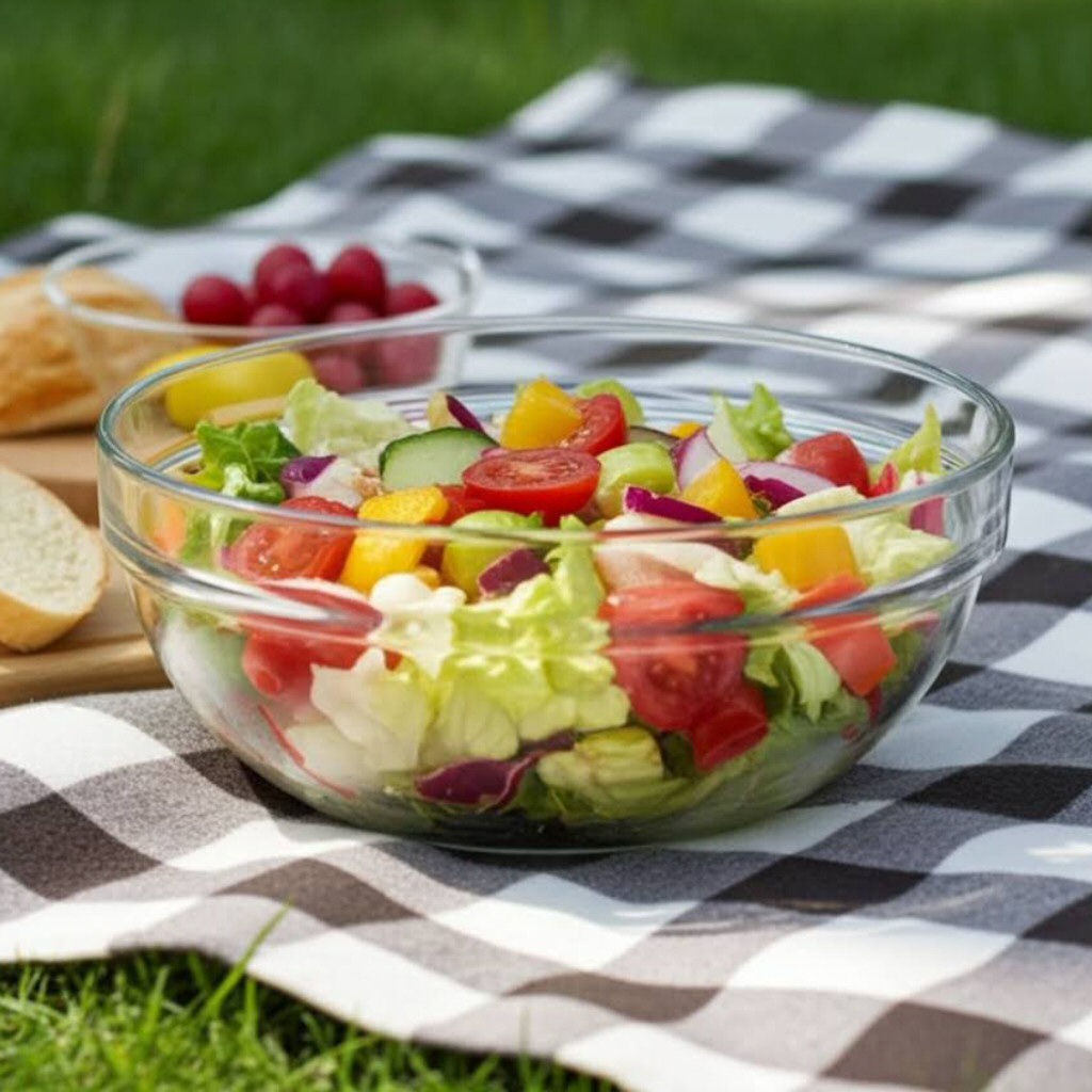 Oplev den perfekte Glasskål til salater og desserter! Lad farverne skinne igennem glasset og forvandle din servering til en indbydende fest for øjet.