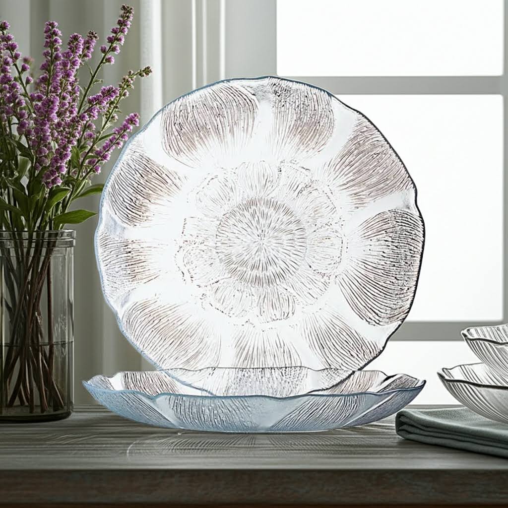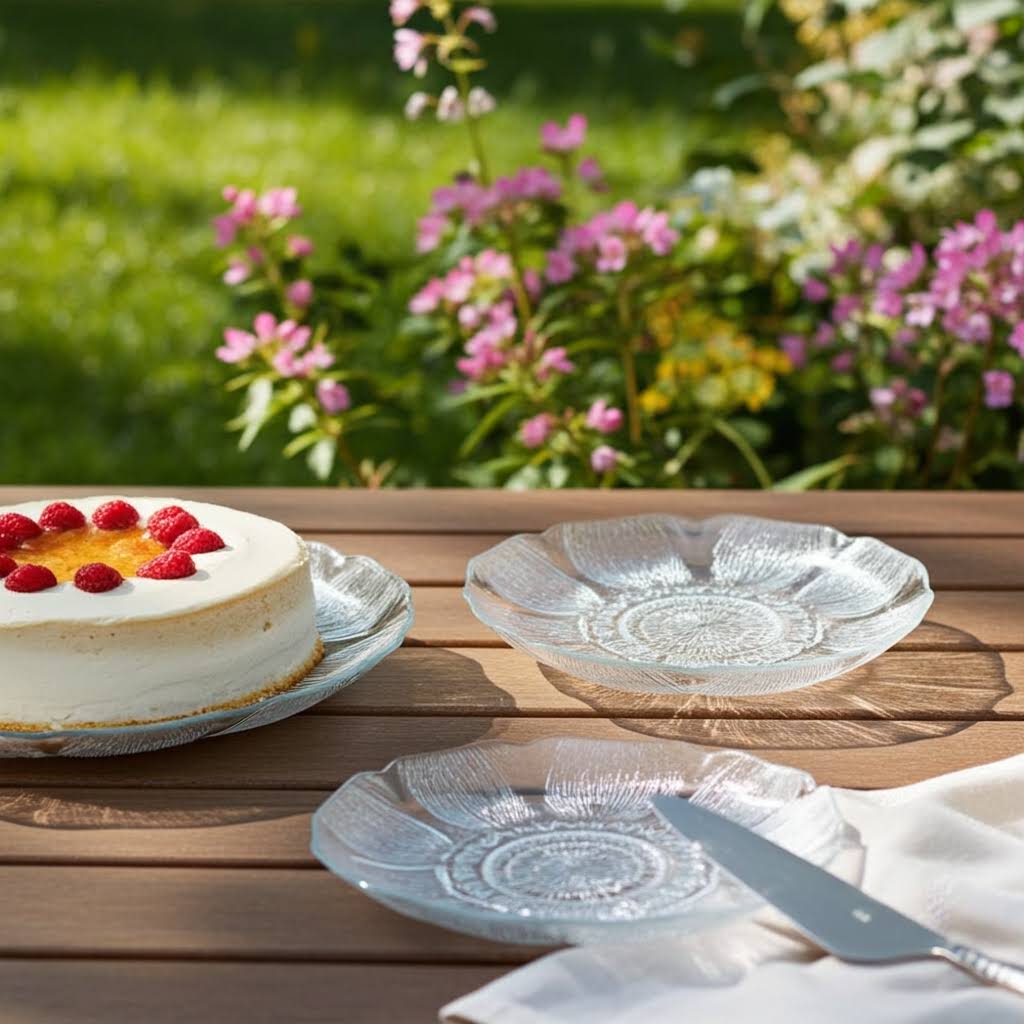 Gør din fødselsdagsfest ekstra speciel med vores smukke lagkagefad i glas, der har et stilfuldt materet rosenmønster. Med en diameter på 33 cm er dette fad ideelt til at præsentere lækre lagkager, tærter eller andre festlige desserter.
