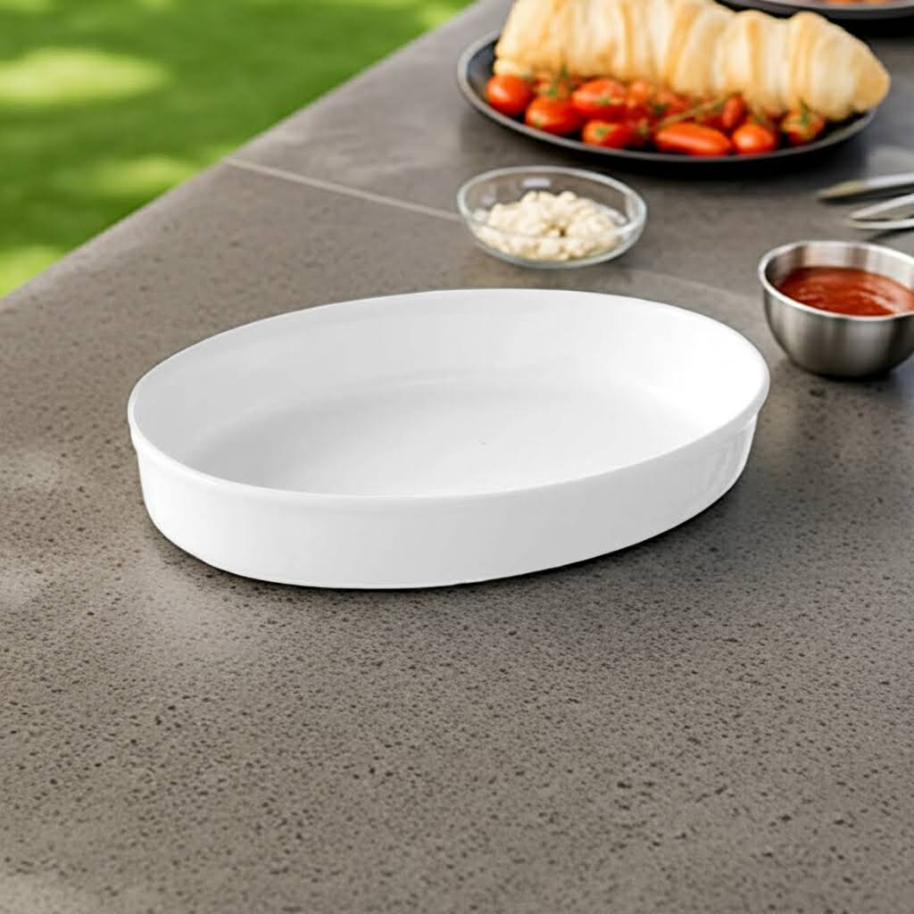 Med en praktisk højde og et design, der fås i flere størrelser, kan du nemt finde det ideelle fad, der passer til dine behov. Det er også brugervenligt, da det tåler både mikroovn og ovn – perfekt til opvarmning eller tilberedning af mad direkte i fadet. Gå ikke glip af muligheden for at gøre din fest uforglemmelig. Lej vores ovale fad i dag og løft din madpræsentation til nye højder! Kontakt os nu for at sikre dig, at fadet er tilgængeligt på din ønskede dato. Vi ser frem til at hjælpe dig med at skabe en perfekt fest!