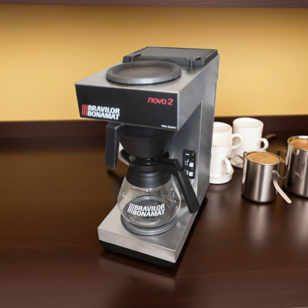 Lej vores kaffemaskine Bonamat er markedets bedste filterkaffemaskine til professionel brug. for enkel og praktisk kaffebryging. Kaffemaskinen brygger kaffe af højeste kvalitet, som smagsmæssigt er på niveau med, hvad en barista kan brygge.